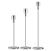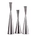 ELEGANT DESIGN: SET of 3. These candlestick holders are sold in pack of assorted size. They are shiny silver color with a brushed metal design, vintage & modern feel. They are slender, hourglass shape, heavy and with a good weight.