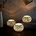 Package includes 3 glass mosaic tea light candle holders, overall dimension (Width x Height x Opening Dia) is 8.5cm x 5.8cm x 5.6cm / 3.35” x 2.3” x 2.2”, suitable for placing tea light candle, votive candle, pillar candle, flameless led candle, wick candle, etc.