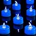Value bulk set: Set of 24 blue light tealights with high-quality batteries pre-installed, each battery has at least 150 hours light-time. All this means LESS COST ON TEALIGHT