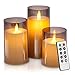 Package Includes: The flameless candle set includes 3 moving flame LED candles(3”Dx5"6"7”H), a remote control and an user manual. Each battery operated candle is powered by 2 AA batteries(not included) that last 300+ hours.