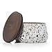 Wooden crackle wick candles packaged in nostalgic embossed tins for easy, safe use