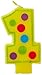 FESTIVE DESIGN: Create a truly show-stopping cake display with this candle that features a number 1-shaped design embellished with colorful dots against the yellow background.