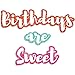 Comes With: You will receive 12 cupcakes, 48 candles, and 3 word cutouts that read "Birthdays are Sweet"; 63 pieces total