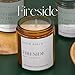THE SCENT: We've captured the true essence of sitting by a cozy fire with our Fireside candle. Familiar and distinctive, this candle blends notes of smoke and wood into a warm union of clove, amber, sandalwood, and patchouli.