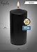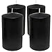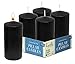 SIZE: 2 inch diameter x 4 inch height (50mm x 100mm). PACK: 4-pack. COLOR: Black. BURN TIME: 25-hour burn time. FITS: Standard pillar candle holders. WICK: Smokeless, 100% cotton lead-free wicks.