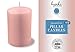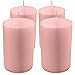 SIZE: 2 inch diameter x 4 inch height (50mm x 100mm). PACK: 4-pack. COLOR: Light Pink. BURN TIME: 25-hour burn time. FITS: Standard pillar candle holders. WICK: Smokeless, 100% cotton lead-free wicks.