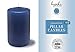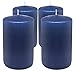 SIZE: 2 inch diameter x 4 inch height (50mm x 100mm). PACK: 4-pack. COLOR: Midnight Blue. BURN TIME: 25-hour burn time. FITS: Standard pillar candle holders. WICK: Smokeless, 100% cotton lead-free wicks.