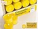 SPECS: Height: 1.2" (30mm), Width/Diameter: 1.4" (35mm). COLOR: Yellow. SCENT: Strong fresh citrus citronella aroma. BULK PACK: 50 Pieces. CANDLE HOLDER NOT INCLUDED.