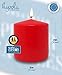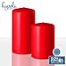 SIZE: 3.1 inch diameter x 3.1 inch height (80mm x 80mm). PACK: 6-pack. COLOR: Red. BURN TIME: 41-hour burn time. FITS: Standard pillar candle holders. WICK: Smokeless, 100% cotton lead-free wicks.