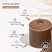 VOTIVE CANDLES SCENTED: SIZE: 1.4" x 1.4" (35mm x 35mm). SCENT: Roasted Almonds COLOR: Light Brown. WICK: Lead-free 100% Cotton Wick, non-toxic. BURN TIME: 12 Hours. BULK PACK: 9 small scented candles for home