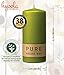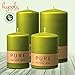 MULTIPORPOSE: Great for both indoor / outdoor use. Perfect for home decor, party centerpieces, wedding receptions, bath candles or dinners at home. SIZE: 5.1" Height x 2.3" Diameter (130mm x 60mm) - 38 hour burn time. COLOR: Green