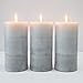 SIZE AND PACKAGING: Tall candles pillar pack of 3 with a size of 2.75 inches wide and 4 inches tall. These long burning candles have improved packaging to prevent damage