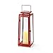 REALISTIC CANDLE LANTERN: This decorative lantern features an elegant, red metal frame with glass panels and a lifelike flameless candle inside. | Single Lantern. | 6"W x 6"L x 15"H.