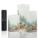 Designed for Christmas Decorations. The set of three flameless LED candles is designed for Xmas decorations. The beautiful decal includes Christmas images such as Santa Claus, reindeer, sleigh, snowman, Christmas tree and house. All patterns are specially designed for the holiday. The battery powered LED candles create holiday atmosphere for Christmas and are great gift choice for both family and friends.