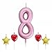 Eye-catch Design: Happy birthday candle come in pink vivid color and glow bright in dark light. Make your birthday cake special and stand out. You can choose any number from 0-9 or make a combination such as 17, 24, 36, 47, 54, 77, 84.And 1 birthday candle is ideal for those beauty who want keep her mystery.