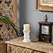 Use the decorative premium quality handcrafted wood pillar candle holders for your fireplace mantel decor or as a farmhouse table centerpiece. Classic white antique finished, is the perfect complement to rustic and farmhouse inspired decor styles.