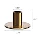 A modern take on the classic brass look candlestick holder, these simple circular metal taper candle holders can stand alone or work beautifully in a cluster. Perfect for bookshelves, dinner tables, or more elaborate displays