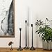 These iron candle holders set come in various heights and feature a classic black pillar design