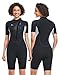 【Multi-Function Women's Shorty Wetsuit】- Heavy-duty YKK back zipper women's shorty wetsuit is easy for exit and entry; Flat-Lock Stitched Seams is excellent durability and fantastic comfort to keep your body warm in the coldest conditions for canoeing, sea kayaking, snorkeling, diving, and other water activities.