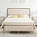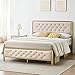 【Classic & Modern Charm】The king bed frame is completely upholstered and padded for a premium look and feel. High quality linen fabric is selected to add tailored touch and upscale aesthetic. Graceful arched profile, classic bronze nailhead trim, diamond stitches and tufted button lend chic and subtle beauty, setting the tone for a bedroom of livable elegance
