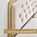 Modern Luxury Upholstered Bed Frame: Combining a unique gold frame with an upholstered headboard gives the bed a fuller, more modern look. This beige frame queen bed makes a modern statement in a charming way and also serves as a stunning centerpiece for your bedroom.