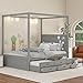 【Queen Canopy Bed with Storage】There are three storage drawers under the trundle is a good choice for space saving which is suitable for family with limited space. The drawers are good choice for storing daily necessities. Overall Product Dimension: 82.9”L x 103.8”W x 78.7”H, Bed Fits standard Queen size mattress, Trundle Bed Fits standard Twin size mattress (mattress not included)