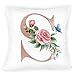 Design: There is a capital letter “A-Z” surrounded by flowers with pure white background, the print is only on one side. Delicate invisible zipper was designed to meet an elegant look and refill pillow easily.