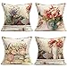 Throw Pillow Cases with Rustic Vintage Animals Cute Rabbits Dragonflies Robin Birds Butterfly Classical Pairs Garden Flowers Painted (HD Digital) Edge is Sewn, the Back is the Nature Linen Color without Printing
