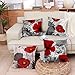 ❤️【Red Pillow Cover for Couch Valentine's Day Size】- 18x18 Inches (about 45x45 cm); Qty: 4pcs (NOT WHITE, PATTERNS ON BOTH SIDES, PILLOW COVERS ONLY, NO PILLOW INSERTS!!!). Style: Red rose bouquet with black and white wooden board background. Full of romantic girl's beautiful love and warm family atmosphere. Elements include flower bouquets, pearl necklaces, text love and home, birds, nests, still life furnishings, vases.