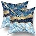 Navy Blue Gold Marble Teal Throw Pillow Covers 18x18 In,Fully Printed On Both Sides, Polyester Fabric, Soft And Comfortable.The Package Includes 2 Pillow Covers,Pillow Insert Not Included.