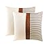Design Theme: Our throw pillow covers are designed for trendy decoration, vertical three piece fine line brown faux leather and linen. The leather accent stripe on this stylish decorative farmhouse throw pillow covers adds an element of class to the stark, a stylish blend of modern and classic. These color block style pillows will definitely become one of your favorite home decoration items.