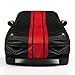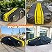 【PROFESSIONAL DESIGN】- ❶2 ultra long reflective strips run from the front to the rear of the car, and there are 2 reflective strips on the rearview mirror, making your car more eye-catching at night. ❷Windproof straps at front & rear to fix your auto cover in heavy wind. ❸Driver door zipper for easy access. ❹2 mirror pockets for optimal coverage.