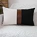 √DURABLE MATERIAL: These decorative pillow covers are made of high quality faux leather and cotton linen blend fabric, comfortable and super great touch.Hidden zipper sewed with neat stitches, works smoothly. Reinforced seams avoid ripping or fraying, providing you durable using experience.