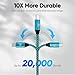 【Premium Durable & Tangle Free】 Sturdy and nylon fabric braided USB charger cable with aluminum alloy connector can bear 20000+ bending test.Tangle free cord design eliminates bunching, tangles, and knots