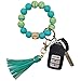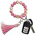 PREMIUM QUALITY & UNIQUE STYLISN COLOR: Stretch keychain bracelets featuring high quality, BPA free, nontoxic 15mm silicone beads that will not irritate your skin, equip with a wooden hexagon bead, fashion leather tassel and practical swivel metal clasp of gold color, the latest fashion designs are adopted on our silicone key ring bracelet, a true actualization of combination between practicality and aesthetics.