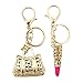 Gold-plated keychain with sparkling crystal rhinestones and carefully designed shapes. Make your keys more eye-catching and attractive. Can be used as a keychain; bag, wallet, cell phone or car decoration; or a unique gift for your family, girlfriend or friends.