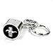 Key chain made from solid casted metal in chrome finish.