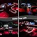 【Music Sync LED】: Interior car lights is equipped with a sensitive sound sensor to synchronize the car led lights with the music beat. The LED light strips will automatically change with the rhythm of music or sound to make your car looks cool and enhance your driving pleasure.