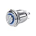 Easy to Install: Silver Stainless Steel Flat Round Momentary Pushbutton Switch with Blue light. Push & Hold, ON; Release, OFF. Hole size required: 0.74''/19mm.