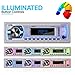MULTICOLOR ILLUMINATION Additional features include AM/FM radio USB charging BT ID3 BT phonebook Android app control moving GUI slide control on EQ/fader 8-band EQ PTT function multicolor illumination parking video output Includes remote