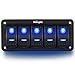 5 Gang rocker switch aluminum panel with DIY stickers and night glow stickers can customize these switches as your demands to remind you while using With pre-wired wiring harness for you to easily install in both 12V and 24V vehicles.