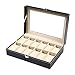 LARGE REAL GLASS LID: Real glass lid protects your watches to the fullest, and offers you an open view of the displayed watches.Box Size: 11.92" L x 7.99" W x 3.14" H.