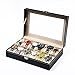 LARGE REAL GLASS LID: Clear glass top offers you a open view and you can find your favorite treasure in seconds with this unique watch and jewelry box. The watch case is would be an excellent idea for a gift for personal use, retail display, and home decoration.
