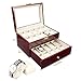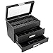 UNIQUE DESIGN: The first layer can display 12 watches that keeps your watches safe, clean, and organized; More compartments of the bottom drawer offers additional storage for rings, necklaces, bracelets, earrings, cuff links, brooches and other jewelry.