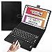 BLUETOOTH KEYBOARD WITH 14 HOTKEYS - Keyboard syncs with tablet via Bluetooth 3.0. QWERTY keyboard, scissor-cut keys, 59 buttons, rechargeable battery (cable included) lasts 100 hours.