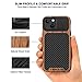 Exact-fit iPhone 13 phone case; Perfect protection, shock absorbent TPU totally protect your device from impact, drops and shocks; Unique designed offer a good grip and comfort with its carbon fiber leather and wood grain finish