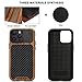Designed for iPhone 14 Pro cases: One-piece case consists of wood veneer, carbon fiber texture leather and TPU; 3 materials are synthesized; Carbon fiber texture leather and wood grain on the back and shock absorbent TPU rubber inside