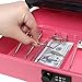 Size and Color: 6.18 x 5.04 x 3.15 inches, Pink. Perfect safe lock box for festivals, supermarket cashier, fundraisers and more. Curved edges to make it comfortable and safe to hold