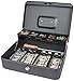 💰【WIDE APPLICATION】: Our large and versatile cash box measures at 11.8" (L) x 9.5" (W) x 3.5" (H) with the cantilever tiered money tray’s dimension at 9.8" (L) x 2.8" (W). Ideal to hold more than just money bills, cash and coins, it is also suitable for storing jewelry, valuables, checks, receipts, keys and more! Practically perfect for indoor and outdoor use, it is great to be used at home, school, office, supermarket or as petty cash for festivals, carnivals, yard sales and so on!