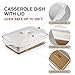 【HEALTHY AND SAFETY】: The casserole dish with a cover is suitable for oven safe to 428 °F. It can be used in the oven, microwave, refrigerator, and dishwasher. NOTE- no direct fire and induction cooker